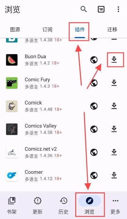 支持全球漫画资源:可阅读国漫、日漫、韩漫、美漫等多种类型,通过插件仓库接入不同来源。