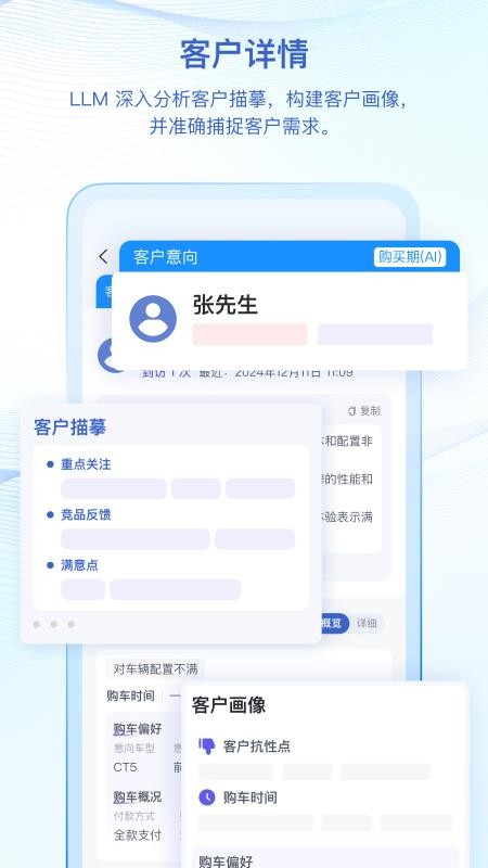 2、自动总结相关的客户意向和画像,精准把握客户的需求。
