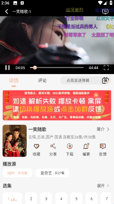 1、进入余白影视官方版之后,任意播放一部电视剧。