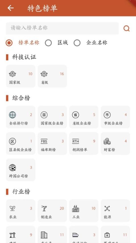 进入到特色榜单中可对各种类型的榜单信息在线查看,了解各类榜单的全面内容。