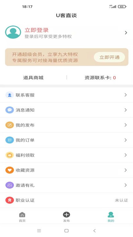 U客直谈是链接资源、人脉与客户的平台,找商务资源、找地推拉新、找品牌渠道,首选U客直谈,高效渠道沟通平台。相比于线下耗时耗力的商务资源拓展,U客直谈以资源为切入点打开职场人士合作入口,可快速、高效、精准对接到业务开展合作,为企业职场商务人士提供了一个高效的合作洽谈平台。U客直谈平台一直秉承“资源共享”这一核心理念,帮助大家“用高效的方式找资源”。