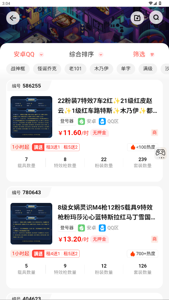 1.打开软件,登录之后,在首页挑选要租号的游戏
