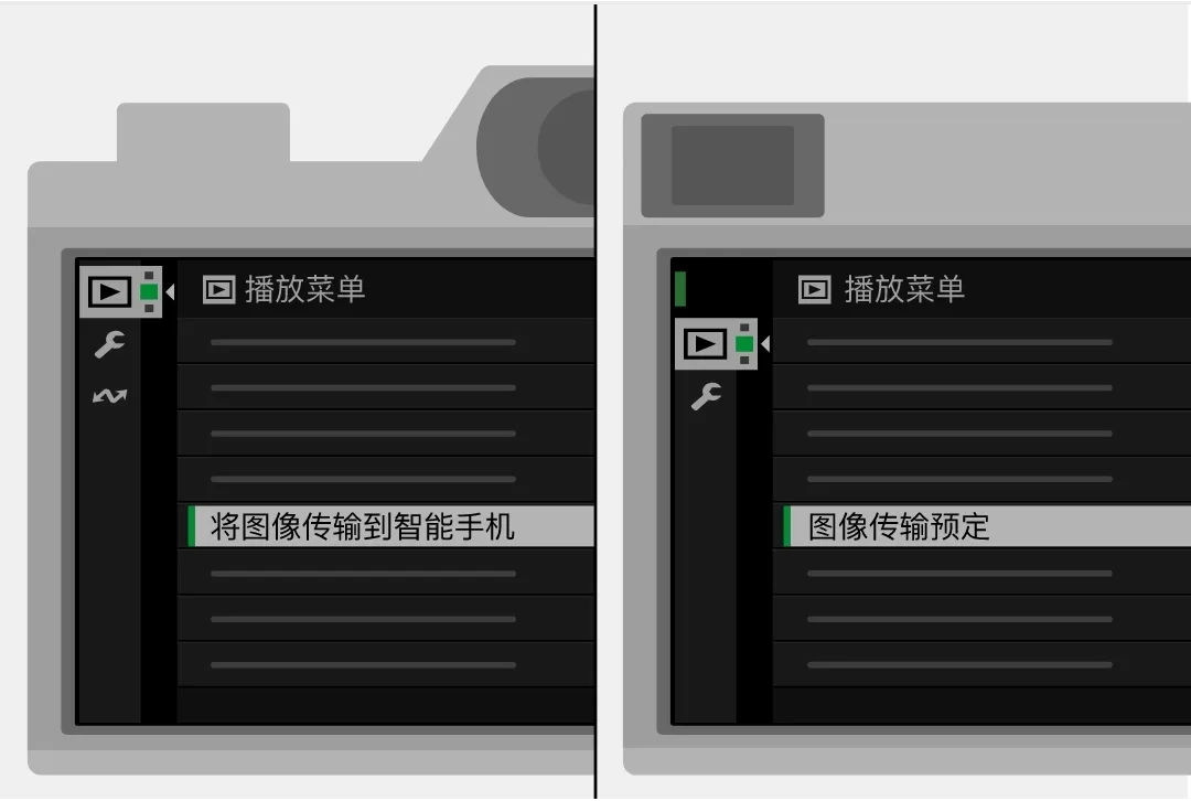 3.图像传输预定:一旦将图像添加到相机的图像传输预定队列中,拍摄或回放模式下使用相机时这些图像将被自动发送到手机。