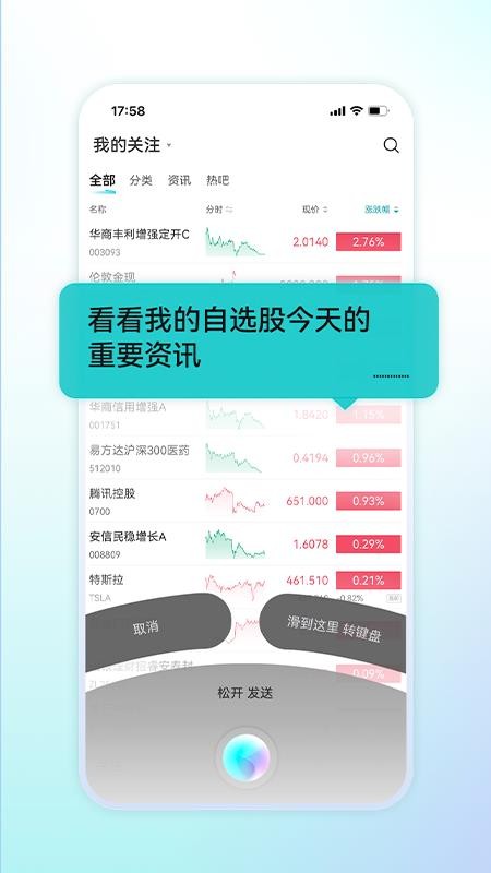 简单便捷的语音操控模式,有效帮助用户解放双手,看诸多股票信息更便利;
