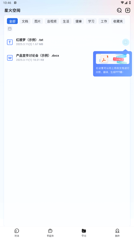 1、在讯飞星火APP中,可以点击右上角的图标来进入历史记录页面。