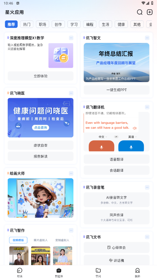 讯飞星火app是科大讯飞股份有限公司重磅打造的一款ai智能助手软件,主要涵盖的方面有语言理解、知识问答、逻辑推理、数学题解答、代码理解和编写、机器翻译、文本摘要、语法检查等等,是一款适用于教育学习、移动办公、汽车互联、数字员工等方面的智能工具。