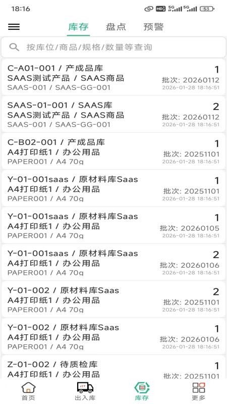 2、进入应用就能汇总了解库存和预警等信息,还能在线搜索查看内容;