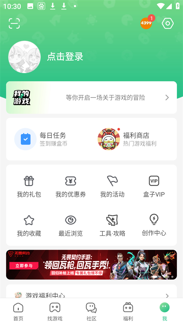 1、打开4399游戏盒手机版之后,点击“我”,选择右上角设置按钮;