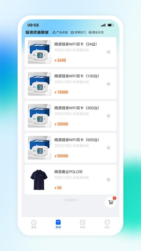 商城中心可以查看到各种各样的随身WiFi产品,可以选购自己需要的产品购买使用。