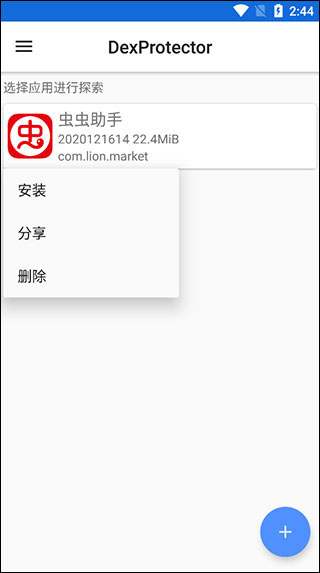 1、打开dexprotector,点击加号进行添加;