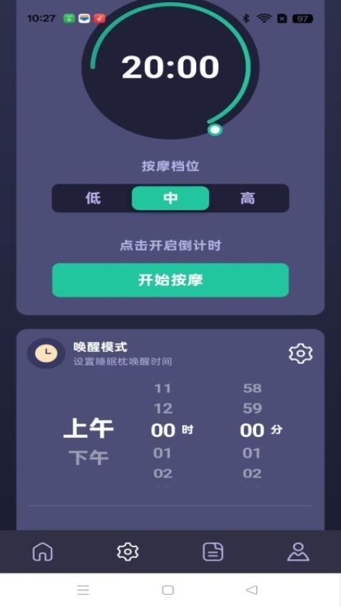5、选择按摩档位和设置按摩时间,一键开始就能体验便利的按摩服务;