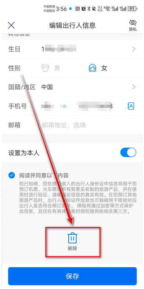 携程旅行怎么删除常用乘坐人