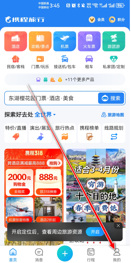 1.打开携程旅行,点击右下角我的。