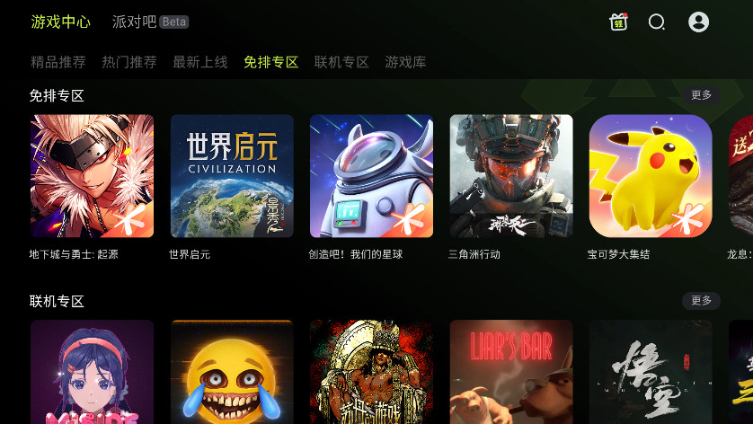 1.请在本站下载安装最新版本的3A云游,可以看到上方有着最新的精品推荐、热门推荐、最新上线、免排专区、联机专区等等板块内容。比如小编点击免排专区。