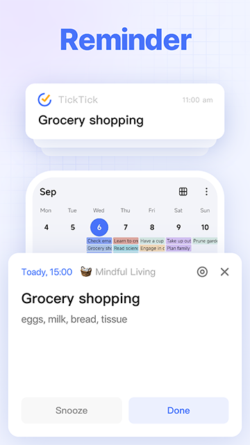 每月的信用卡还款日,每季度要缴纳的房租,朋友的生日和三天一次的健身课,你的生活中,是不是有很多像这样定期重复的事务呢?将所有重复发生的事务都收集起来,逐一创建在滴答清单当中。