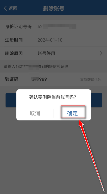 7.按照要求输入正确的信息,勾选我同意《服务协议》和《隐私政策》,再点击同意协议并继续即可重新注册。