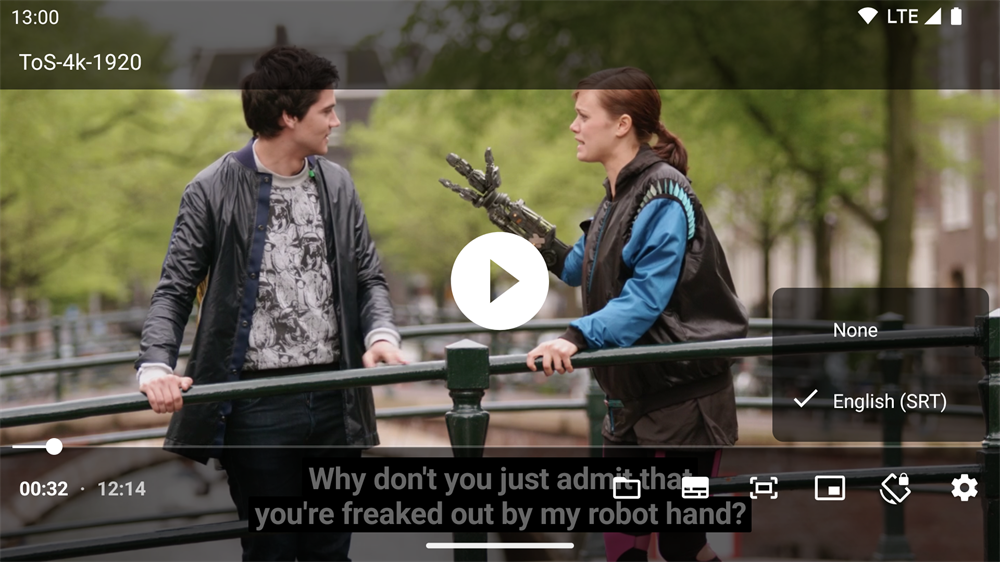 要加载外部(非嵌入)字幕,请长按底部栏中的文件打开操作。