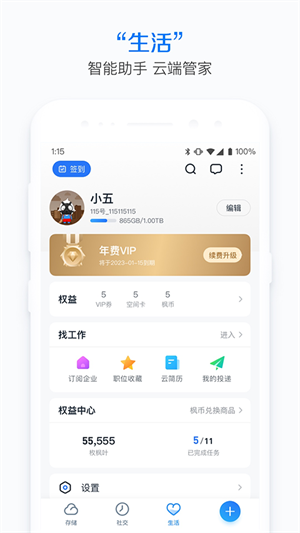 提供找工作、权益等丰富便捷的个人生活和增值服务,轻松管理虚拟资产,还可快速生成云简历,智能匹配工作信息,给生活带来更多便利。