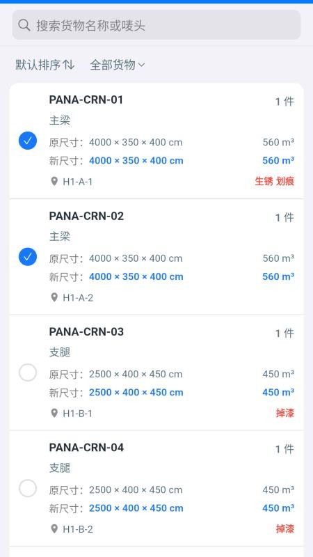 在应用中就能实现货物数据录入,保存货物重量体积和尺寸等参数,方便管理;
