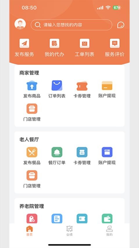 善信医养服务端app主要助力服务人员来为老人提供专业的养老服务,这里可以在线进行待办的服务的处理,一键进行老人管理,多种服务都可以进行筛选,随时发布自己需要1服务,轻松进行商家运营管理,更好的对适老商品进行推广。