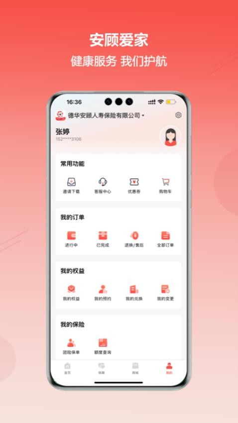 安顾爱家app支持用户可以在线实现健康保险的管理,用户可以在线智能享受新生活,便捷的对自己的健康保险可以在线投保,随时进行扫码理赔,在健康商城中也可以精选需要的药品来进行选购下单,方便用户可以更好的使用健康服务,轻松管理自己的健康。