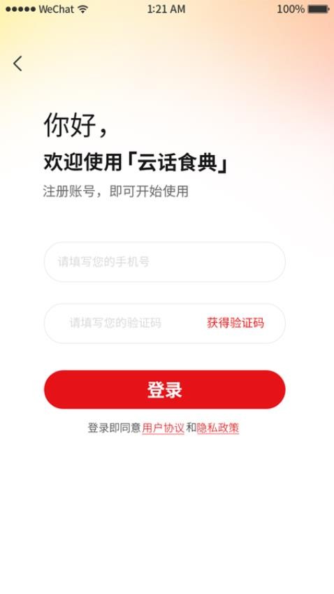 1、下载云话食典app进入软件,了解软件各个功能设置;