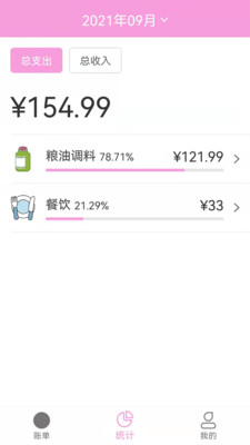 每天的支出会为你生成一个饼状图,让你更直观地看到哪里的钱用得最多。