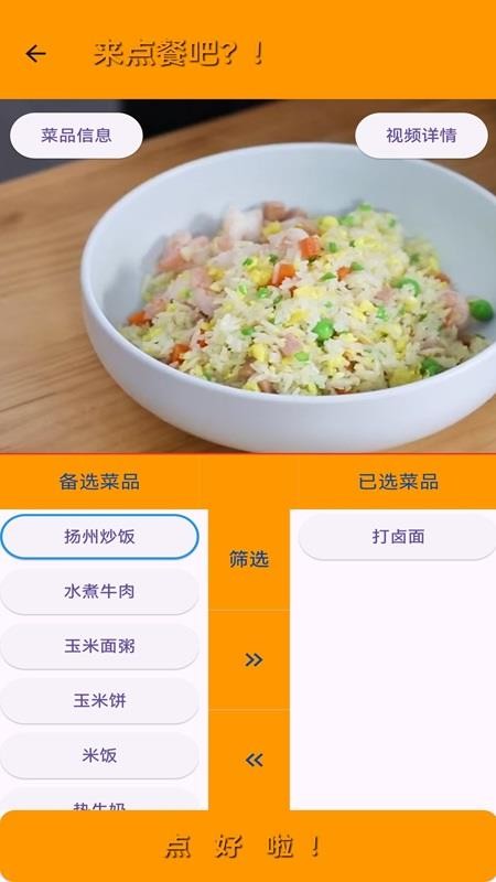 用户可以从你的备选菜品中进行点餐,选择你喜欢的各种菜品进行备餐使用。
