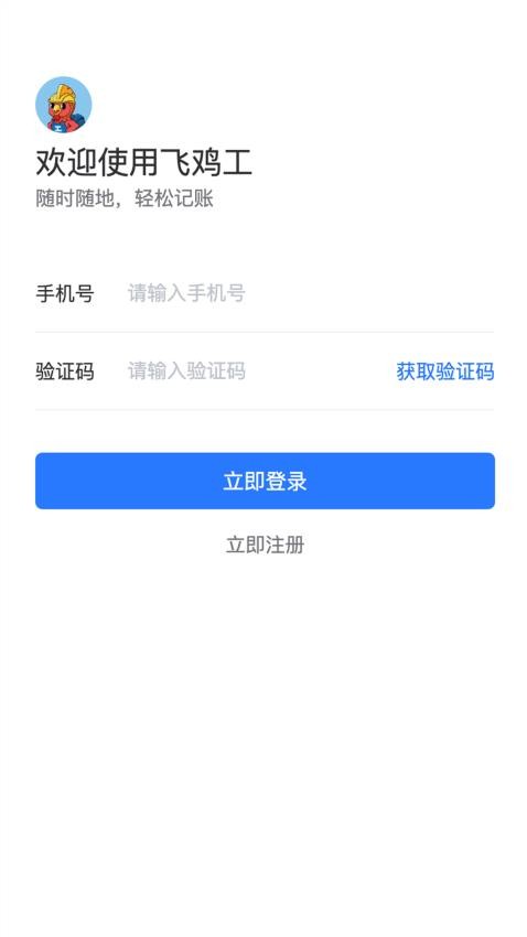 1、下载并打开飞鸡工APP,即可输入手机号和验证码登录使用;