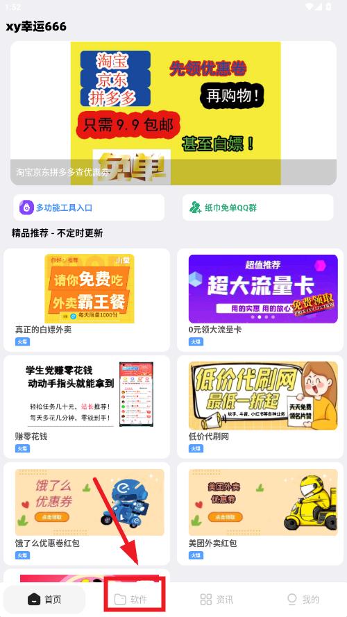 1、打开xy幸运软件库app,进入首页,点击下方的软件