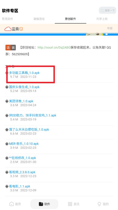 2、进入软件专区,选择要下载的软件类型,比如原创软件