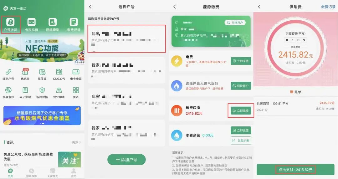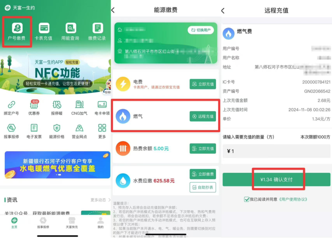 1、首页―户号缴费―选择户号―进入能源缴费页面;