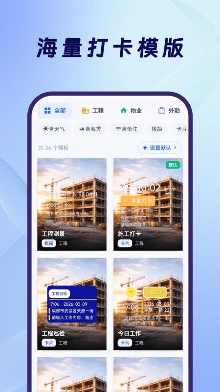 1、汇集了海量的打卡模版,可以选择多种水印样式进行打卡。