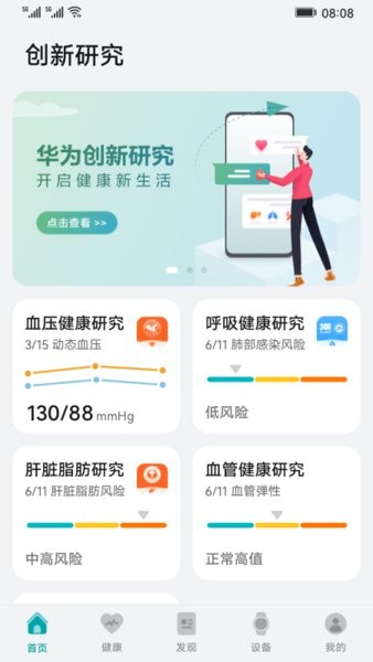 华为创新研究软件支持安卓7以上的手机使用,还有现在的鸿蒙系统也是支持的,它是用来监测我们身体健康情况的,血压、心脏、呼吸灯,还有平时的运动情况,还能查看一些健康常识。