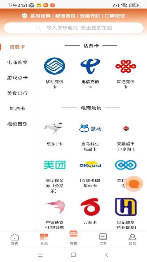 这里也可以轻松实现卡券回收的分类筛选,对话费卡、购物卡、美食出行等业务分类选择。