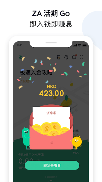 zabank安卓版是香港的第一家虚拟银行,身份证轻松开户,不过它的安全系数是非常高的,我们将钱存在里面,利息也还不错,活期,定期都可以的,而且还支持购买一些理财产品。