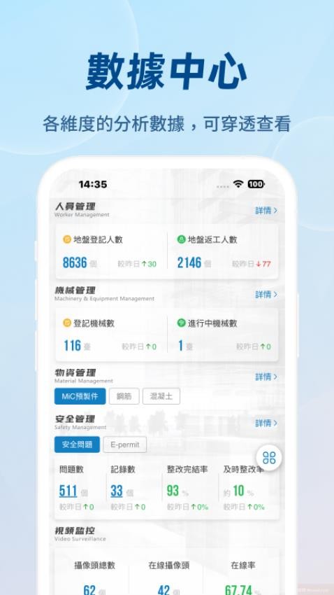 C-SMARTapp是一款面向建筑行业专属设计的工程管理办公平台,涵盖了一体化全场景的建筑工程办公服务,包含有人员管理、机械管理、物资材料管理、进度管理、安全管理等多种功能,让用户可以在这里实现一站式处理所有项目业务的办公体验,提高用户的工作效率,让用户可以高效处理各项工作事务,将相关的人员信息全面的记录管理,可随时查询查看施工人员信息,还可以将各种施工中的机械设备聚合管理,对工程项目的施工进度实时跟进记录,便于用户随时清楚各个项目施工的最新进展情况,有需要的用户就快来下载C-SMART官网版使用吧!