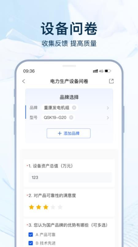 可以参与电力生产设备的问卷调查,对各种设备问题进行答题提交问卷。