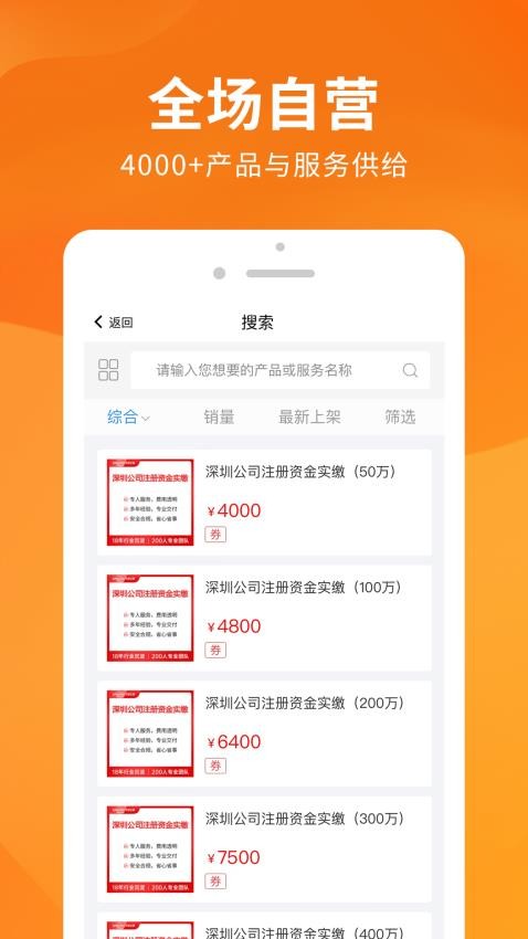 一站式的企业服务内容,涵盖了商标、注册、资质办理等内容;