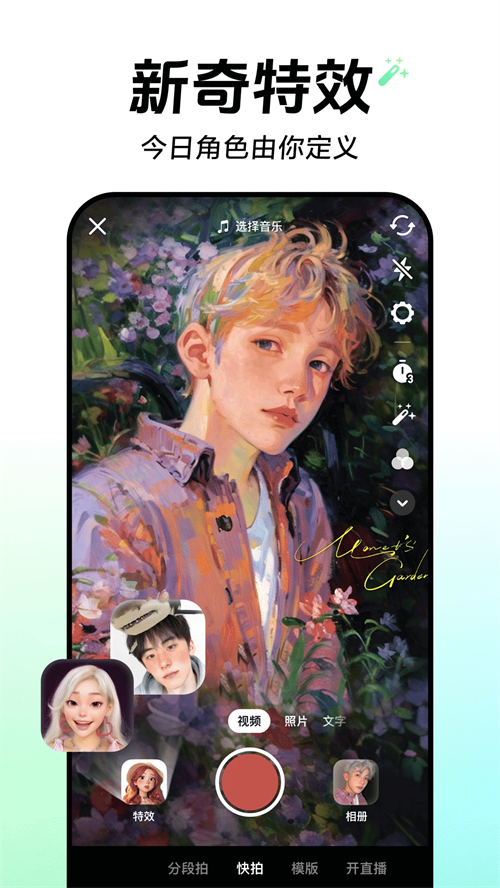 创意视频神器,分段拍摄打破空间局限,15秒轻松上手,自由展现。