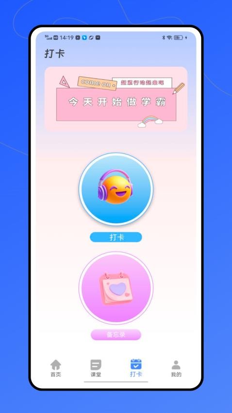 3、进行打开学习,签到打卡记录自己的学习信息,便于高效提升学习水平;