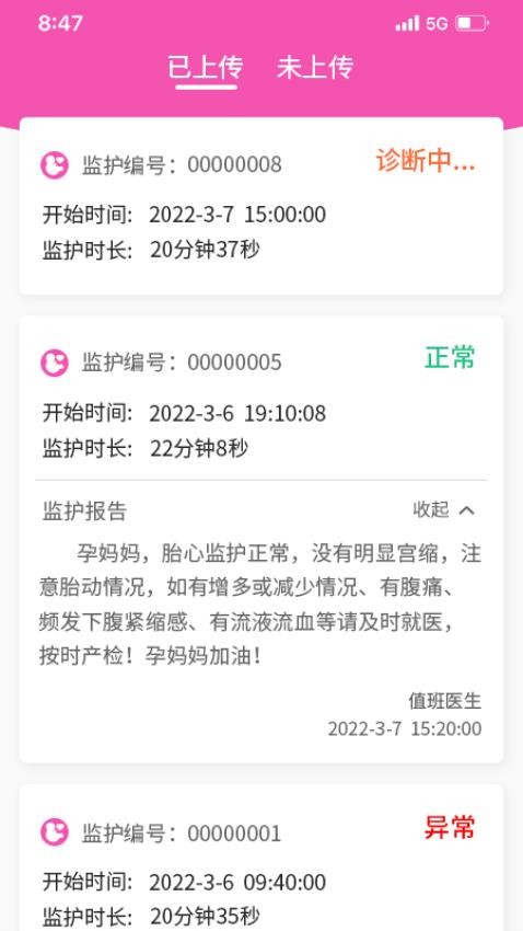 这里也会对监护的胎儿数据进行上传,轻松进行上传保存。