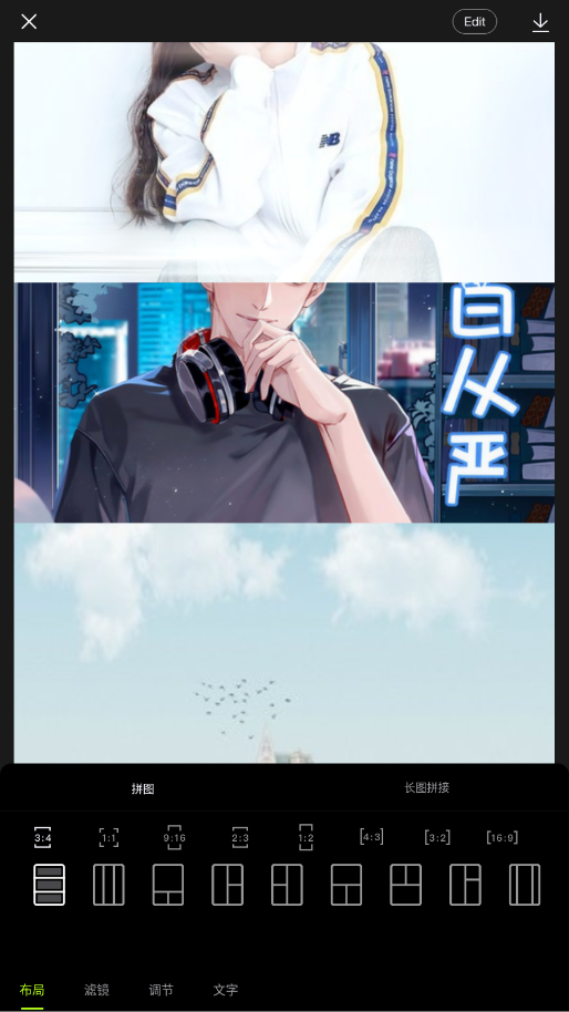 3.设置布局、滤镜等,点击下载按钮即可保存。