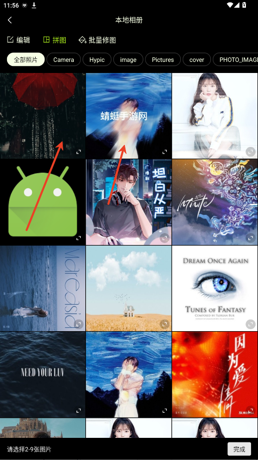2.选择2-9张照片点击完成。