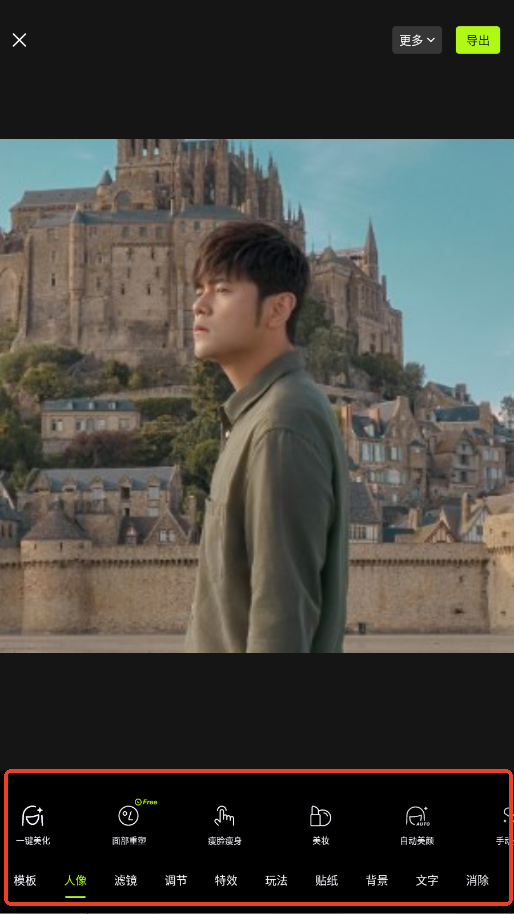 3.选择照片后进入图片编辑页面,下方提供了不同的修图功能,按照美化需求进行设置即可