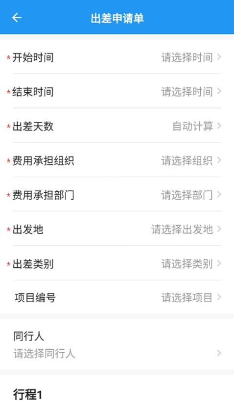 发起出差申请需要用户将申请资料完善填写即可提交申请。