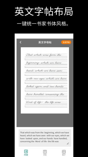 1、支持自定内容:可自定义文字内容,高度制定适合自己的字贴。