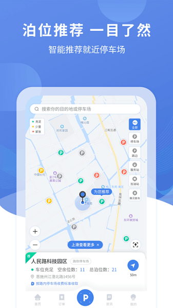2、车位查询:方便您查询您所在位置附近的车位情况,查看附近位置哪里有空闲车位。