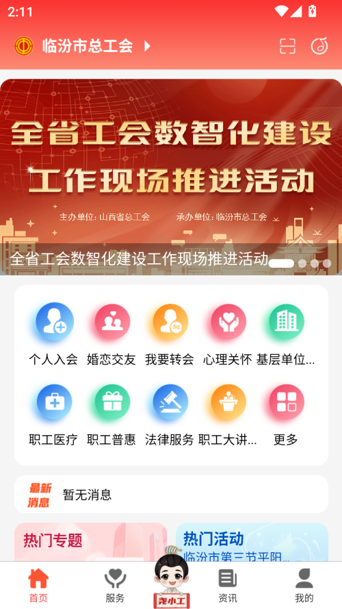 临汾工会app最新版本以职工需求为导向,始终坚持职工需求为导向,做职工的娘家人,让职工切实体会到工会的关怀,无论何时何地,职工都可以通过该应用找到所需的信息和服务。