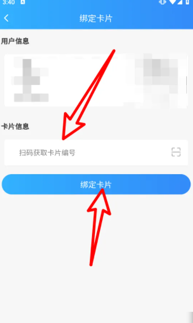 2、在绑定卡片中,输入卡片编号后点击底部的绑定即可